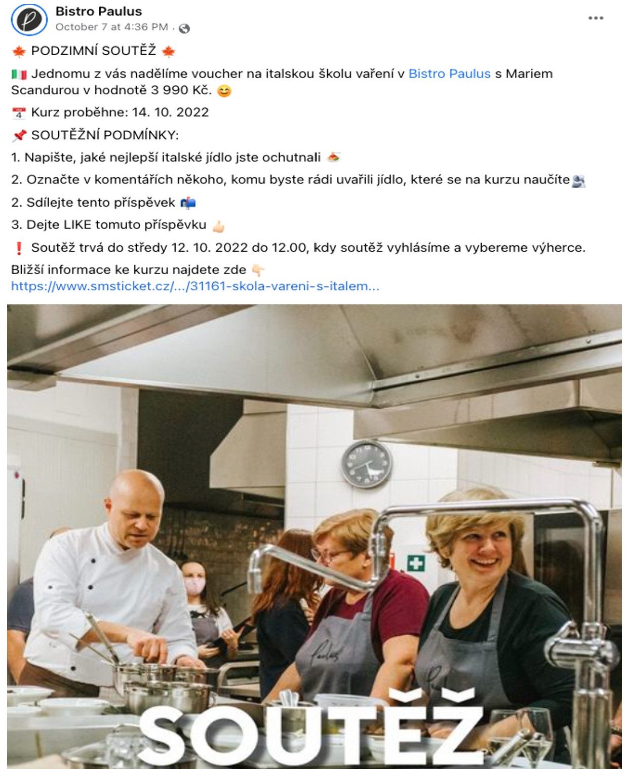 Ukázka příspěvku se soutěží. Zdroj: Facebook