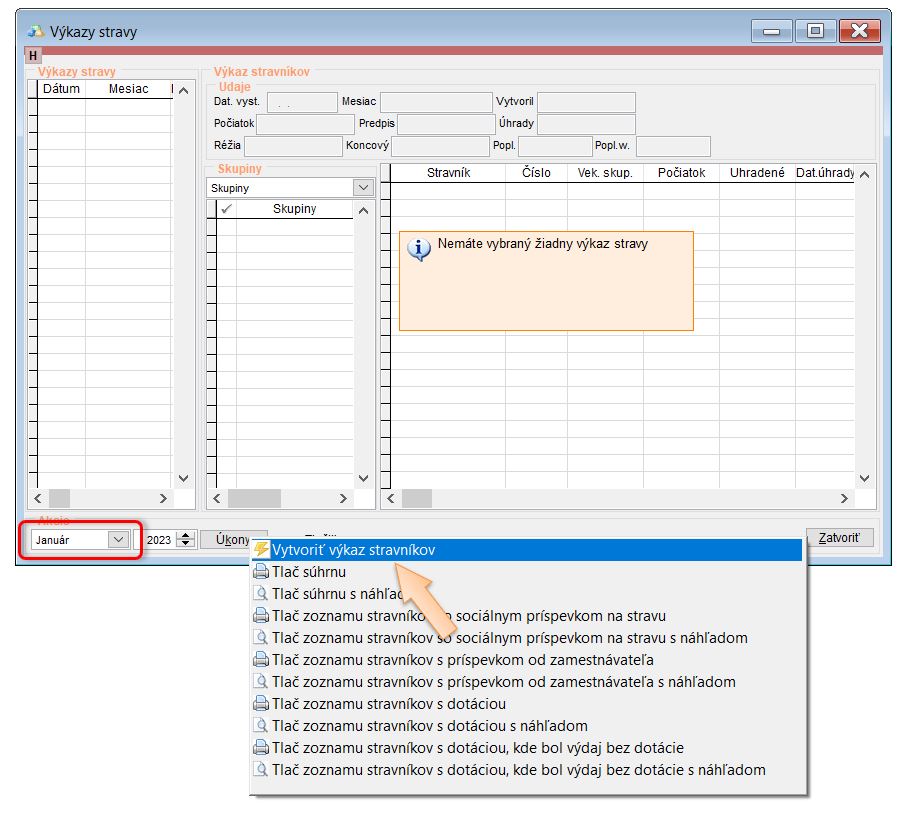 • Vytvoriť Výkaz stravovaných osôb za mesiac, ku ktorému boli prenesené počiatočné finančné stavy.