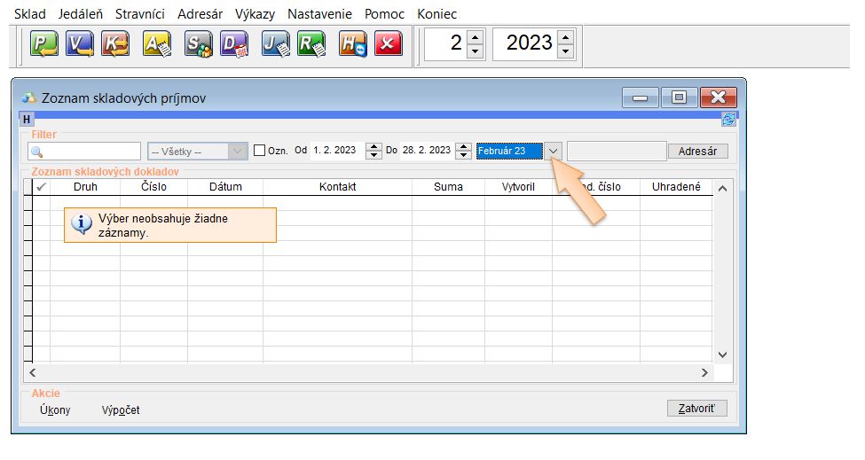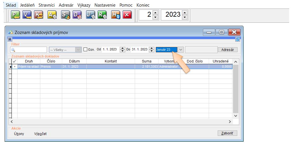 • Počiatočná príjemka sa vytvára k staršiemu dátumu teda k mesiacu, ku ktorému bola vytvorená obratová súpiska. Je potrebné si nastaviť v zozname príjmov zobrazenie všetkých dokladov, nie len aktuálneho mesiaca , lebo sa príjemka nezobrazí.