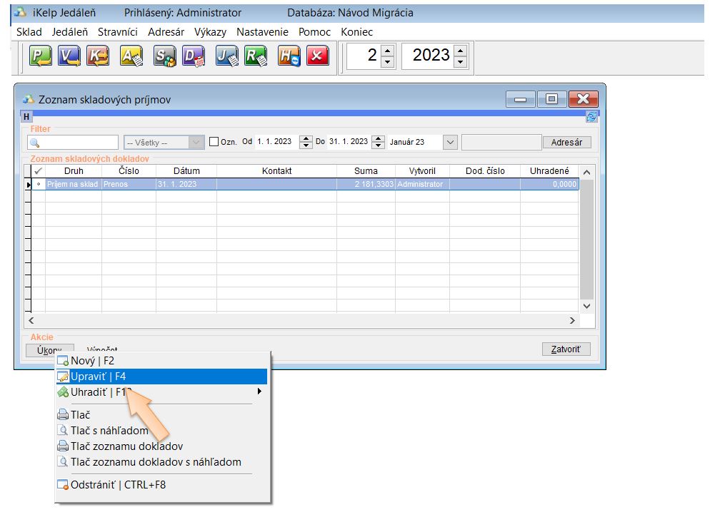 Migrácia (prechod) z verzie 2.4.xx na iKelp Jedáleň Ex - Prenos zostatkov
