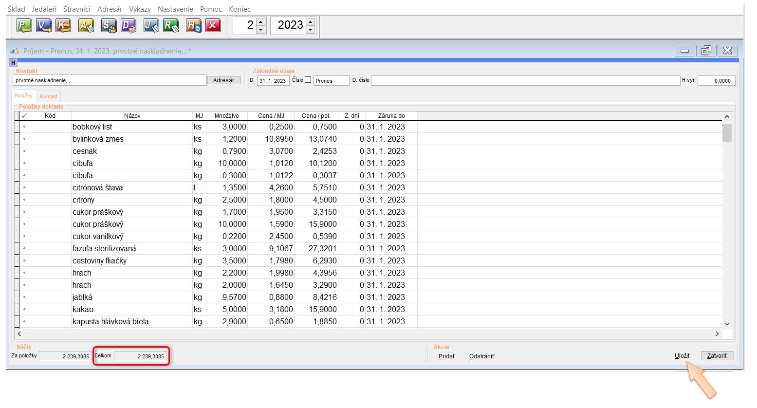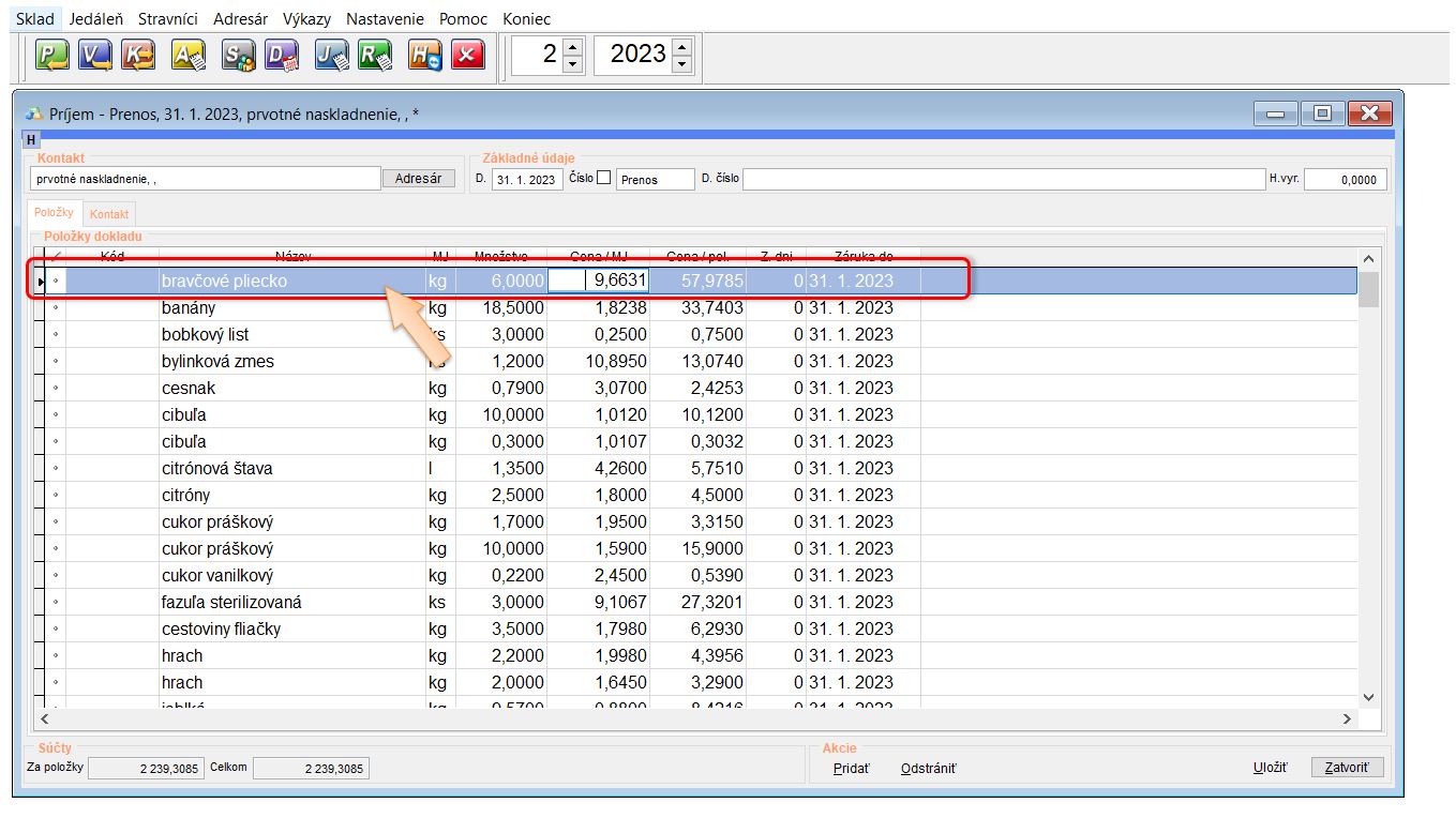 • Skladové zásoby - na základe poslednej obratovej súpisky sa prenášajú zostatky skladu ako počiatočný príjem. (Tento príjem je evidovaný k danému, alebo predchádzajúcemu mesiacu, v ktorom bola vytvorená pôvodná obratová súpiska.)