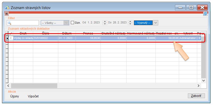 • Stravné listy/výdajky alebo príjemky v mesiaci po vytvorenom výkaze.