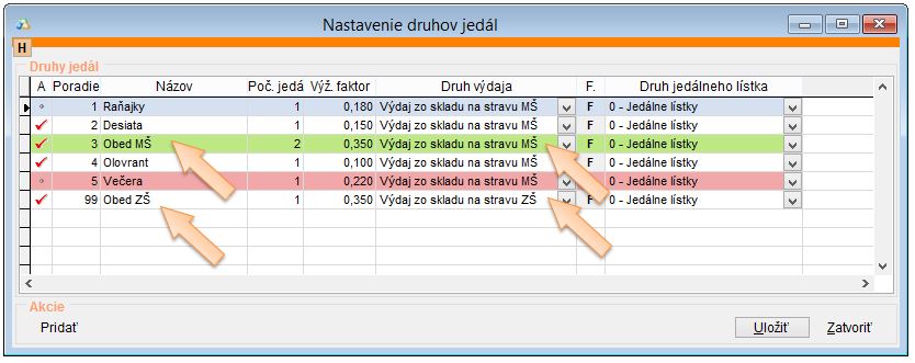 - Zmeny potvrdíte kliknutím na tlačidlo Uložiť. (Ďalšie informácie o Druhoch jedál sa dozviete v článku Druhy jedál.)