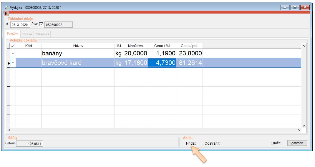 - Doplňte položky vydané zo skladu tlačidlom Pridať.