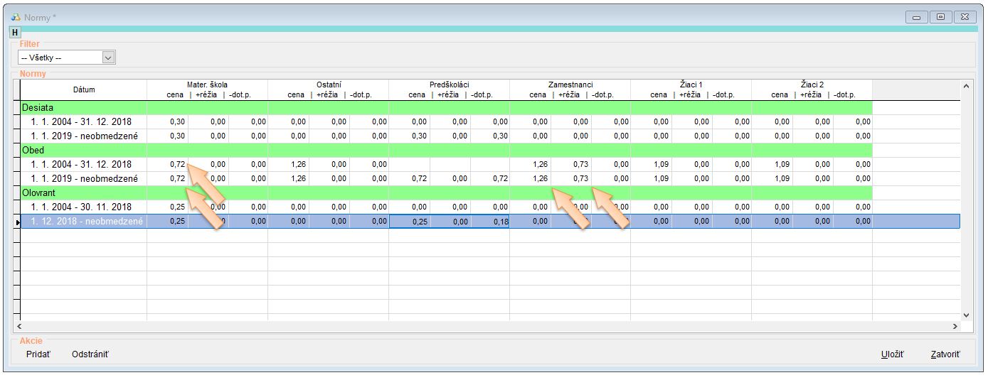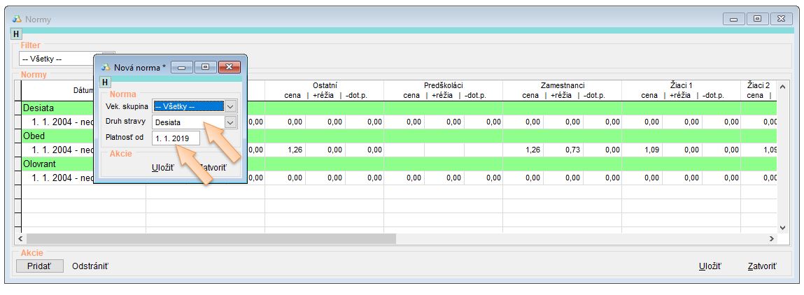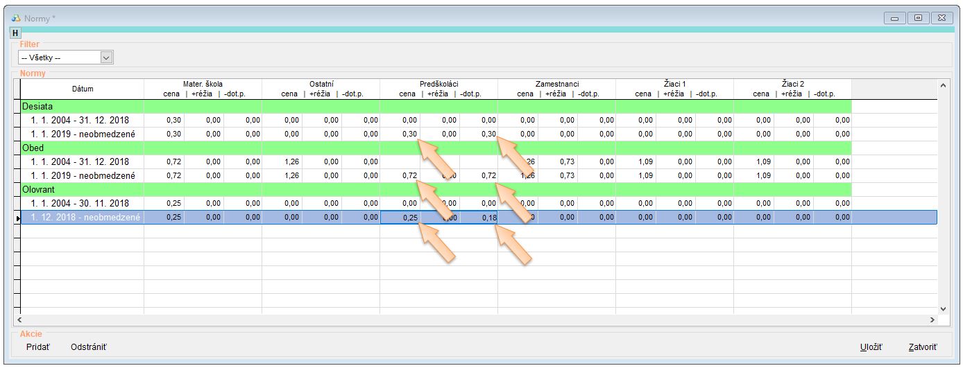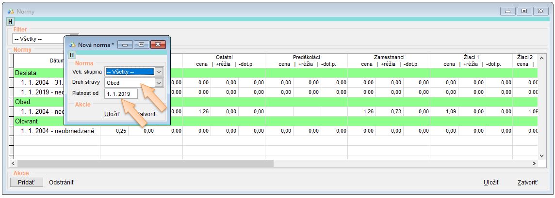- Pridajte normu pre Všetky vekové skupiny. Aj keď sa ostatným skupinám norma nemení. Jednotlivé ceny a príspevky sa následne len opíšu z predchádzajúceho obdobia.