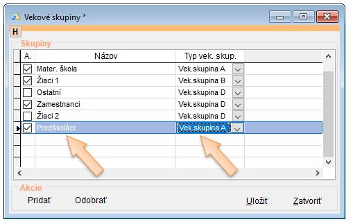 - V prípade potreby nadefinujte viacero vekových skupín. (MŠ Predškoláci D, MŠ Predškoláci D+O, MŠ Predškoláci CD)