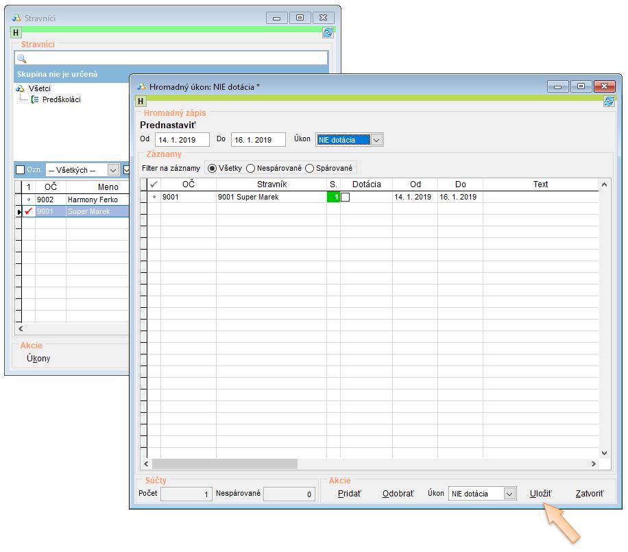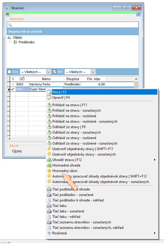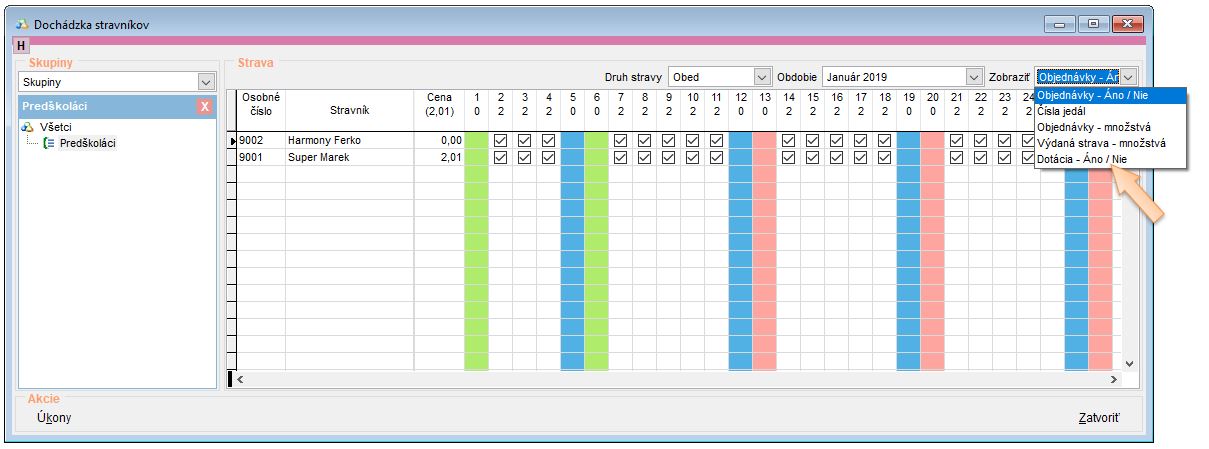 • Otvorte si dochádzku stravníkov. (Tlačidlo D na nástrojovej lište.)