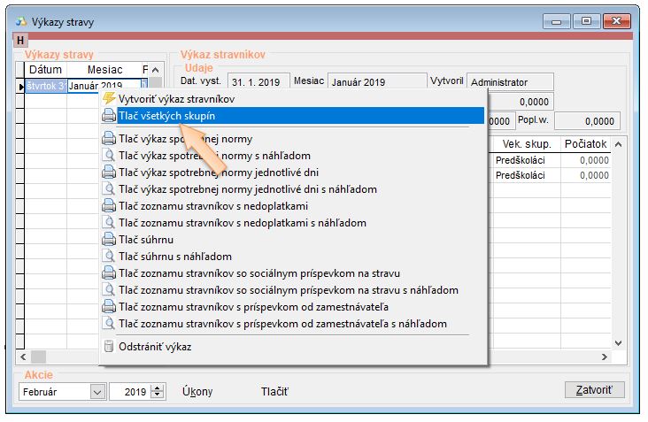 • Kliknite na tlačidlo Úkony - Tlač všetkých skupín.