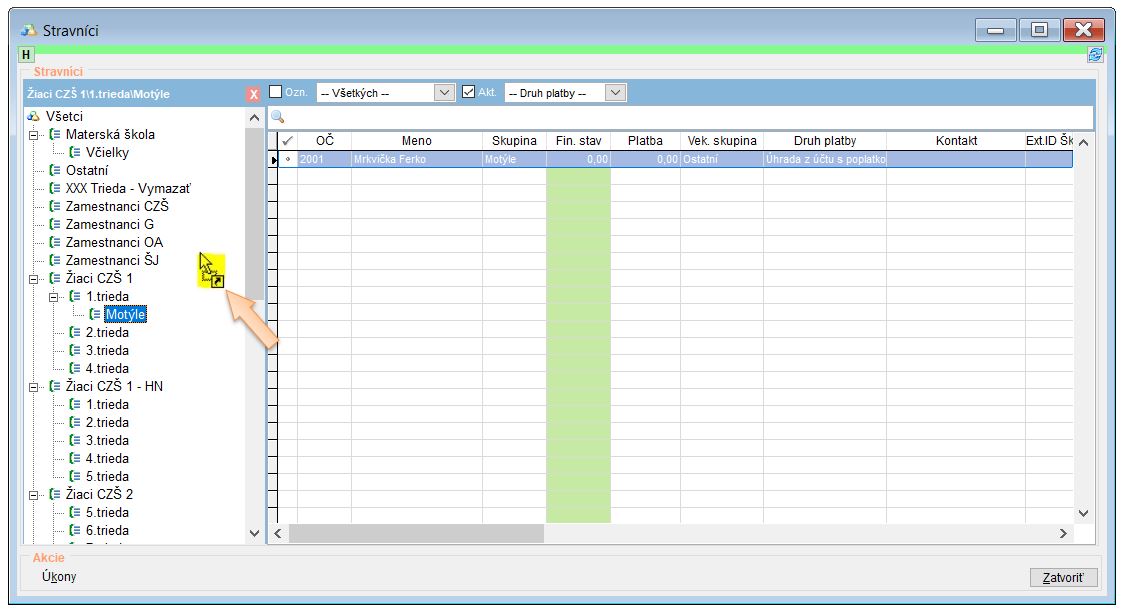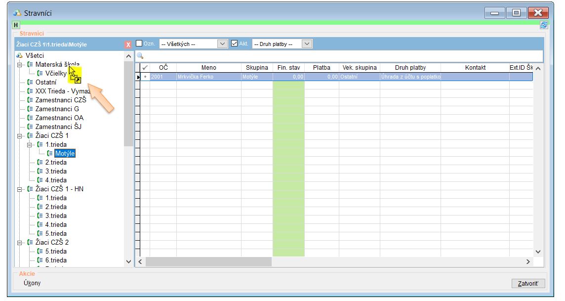 pri názve danej skupiny stravníkov, ale teraz tlačidlo nespúštajte ale podržte ho. (Pri potiahnutí, sa Vám pod kurzorom zobrazí ďalšia čierna šípka)