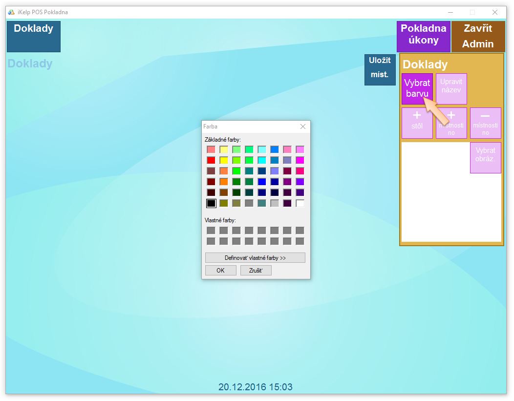 - Vybrat obráz. - kliknutím na tlačítko je možné jako už bylo výše vzpomenuto vybrat obrázek místnosti z předdefinované galerie různých tvarů a barev stolů. Rovněž je možné vytvořit si i vlastní obrázek stolů, aby se zobrazení blíže podobalo provozu a následně je možné si vybrat i z těchto obrázků.