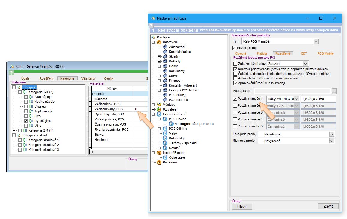 - Aktivujte nastavení "Použití On-line váh při prodeji".