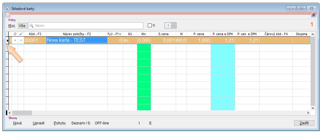 Velikost písma je možné upravovat rovněž ve všech formulářích aplikace. Stačí se v seznamu postavit myší mezi první a druhý řádek a do úplně prvního sloupce před označení typu skladových karet. Zobrazí se posuvník se šipkou směrem nahoru a dolů. Pomocí něj je možné výšku řádku zvětšit, čímž se automaticky upraví velikost písma.