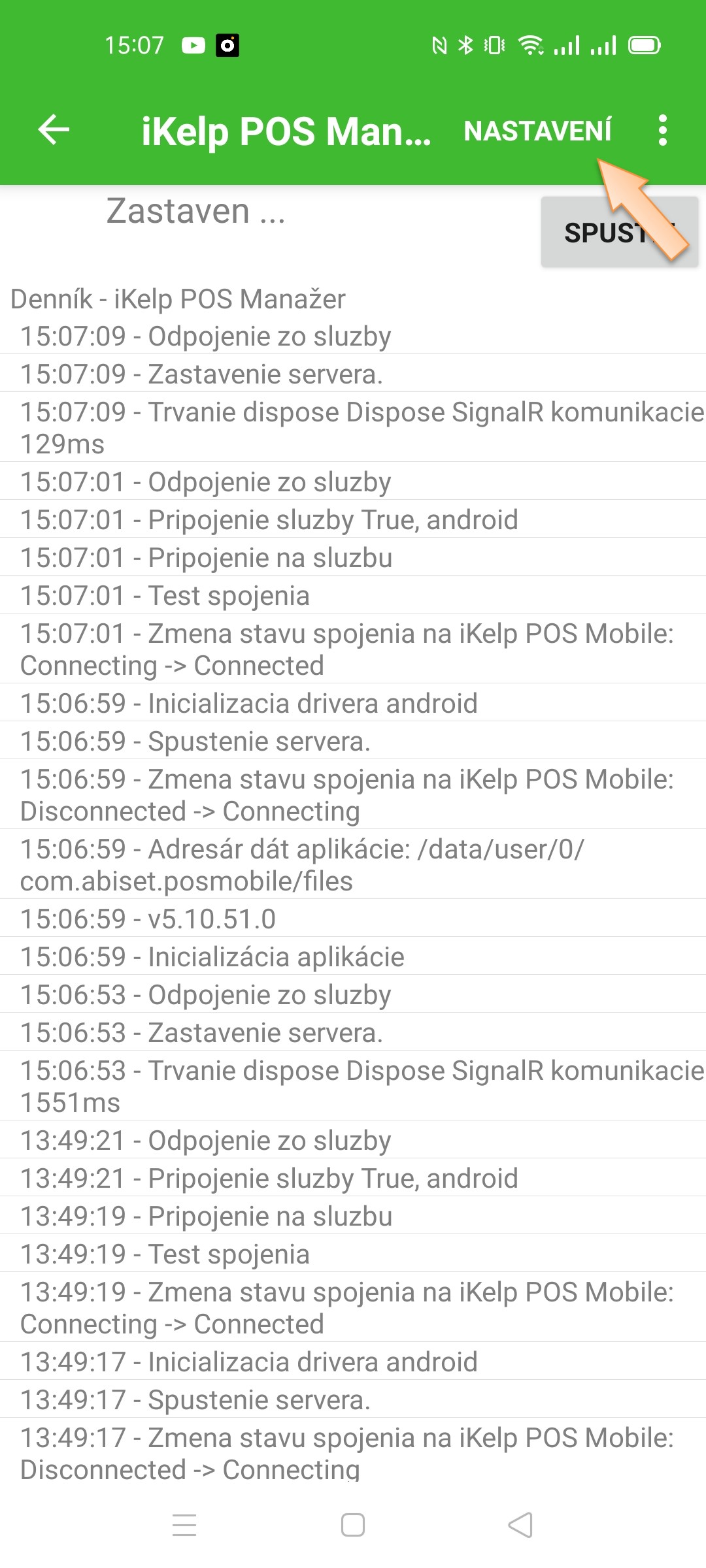 - Po nainštalovaní spustite aplikáciu iKelp POS Mobile a kliknite na tlačidlo Nastavenie.