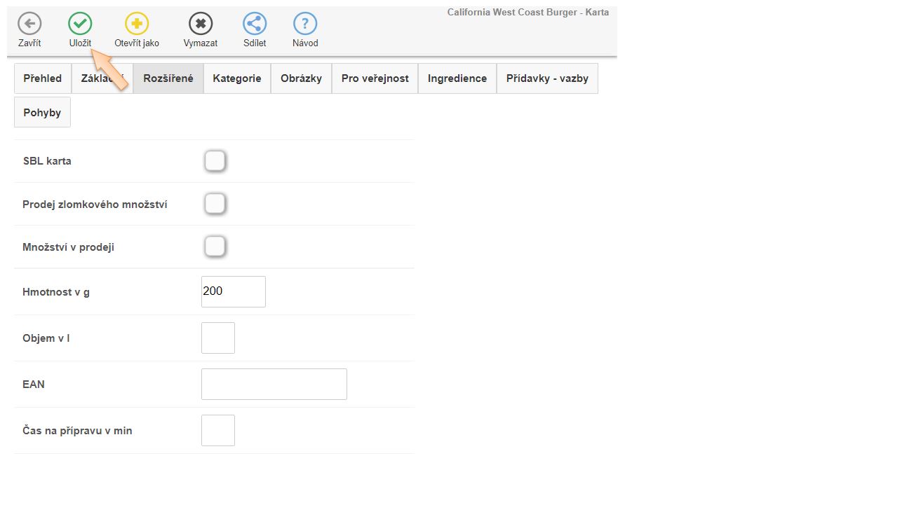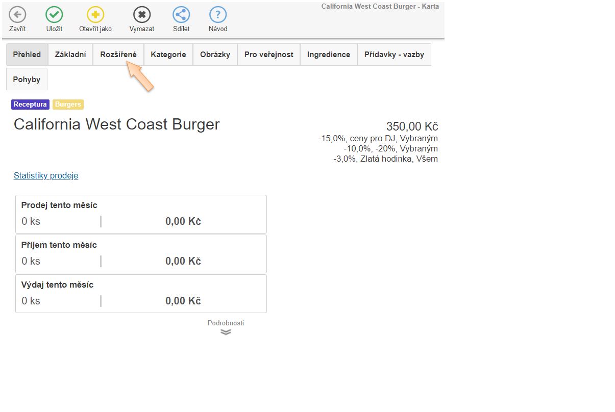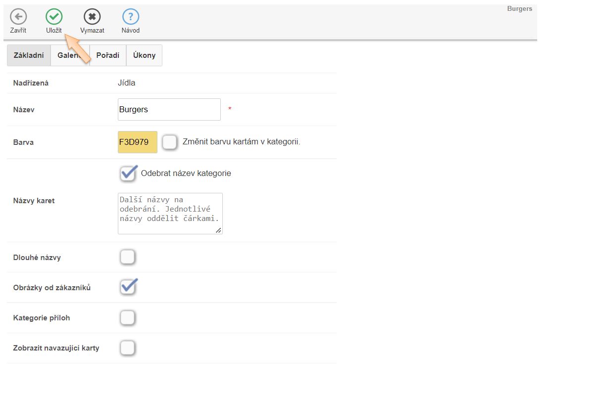 Nastavení doporučujeme aplikovat pouze na hlavní jídla, resp. kategorie. Nastavení neaplikujte na karty, nebo na kategorie přídavků a vazeb.