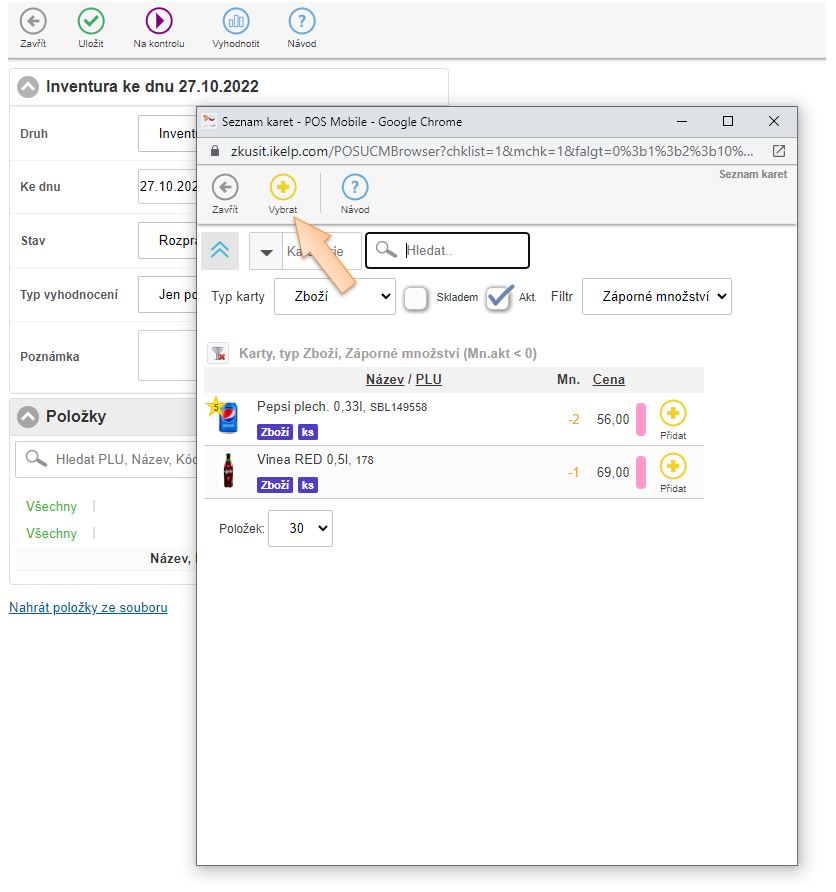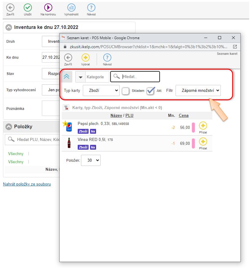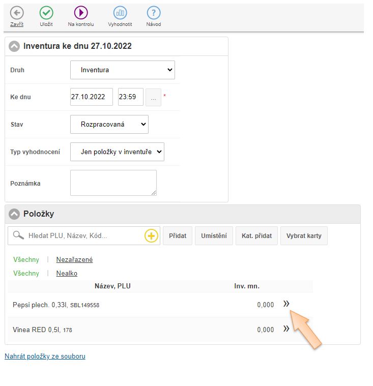 - Uložit - uložit inventuru pro pozdější zpracování.