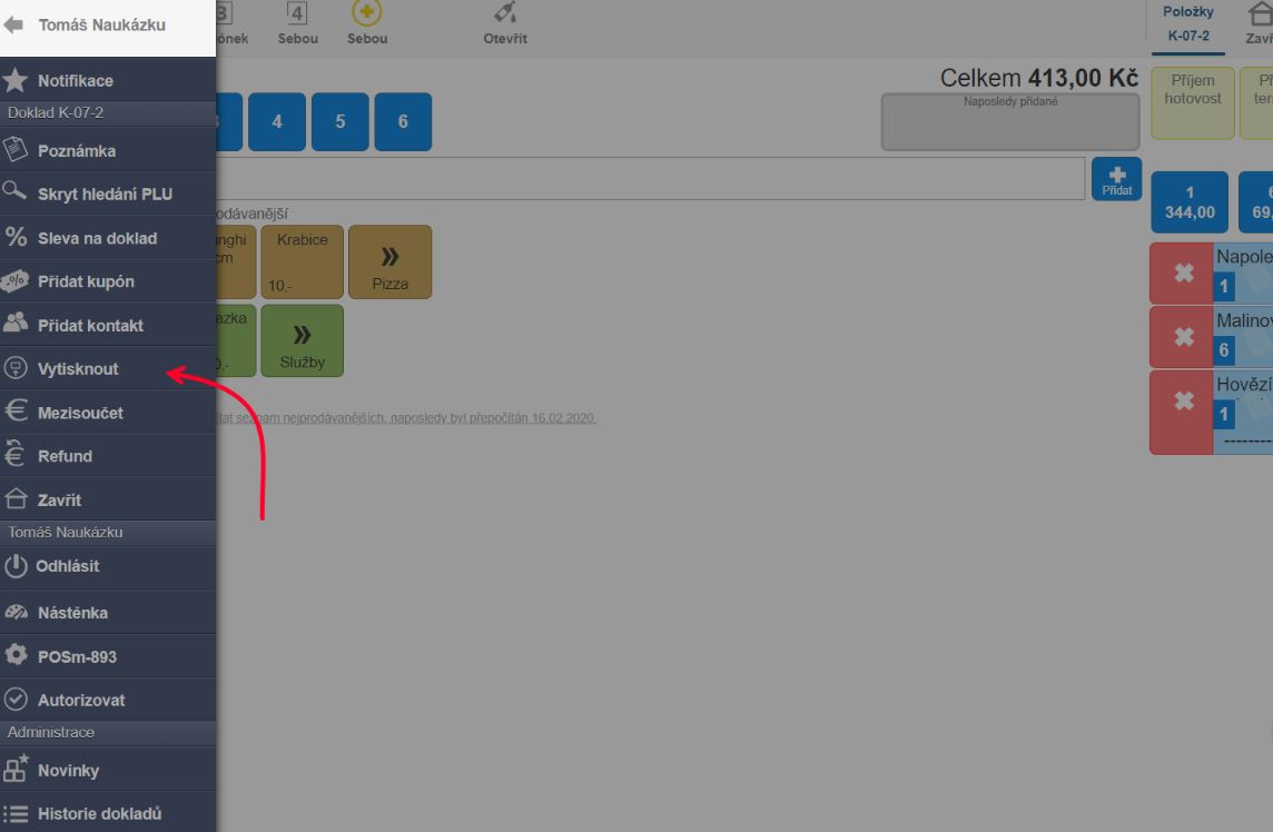 Tisk aktuálního stavu účtu v iKelp POS Mobile