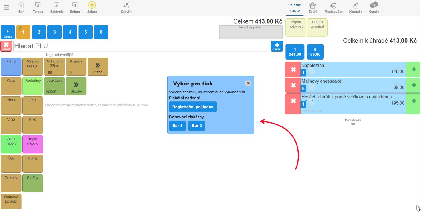 - Otevřete daný stůl, pro který potřebujete průběžný stav vytisknout.
