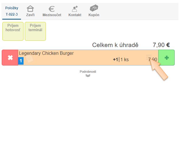 - V prodeji se na položce automaticky zobrazí účtované množství, s upravenou prodejní cenou.