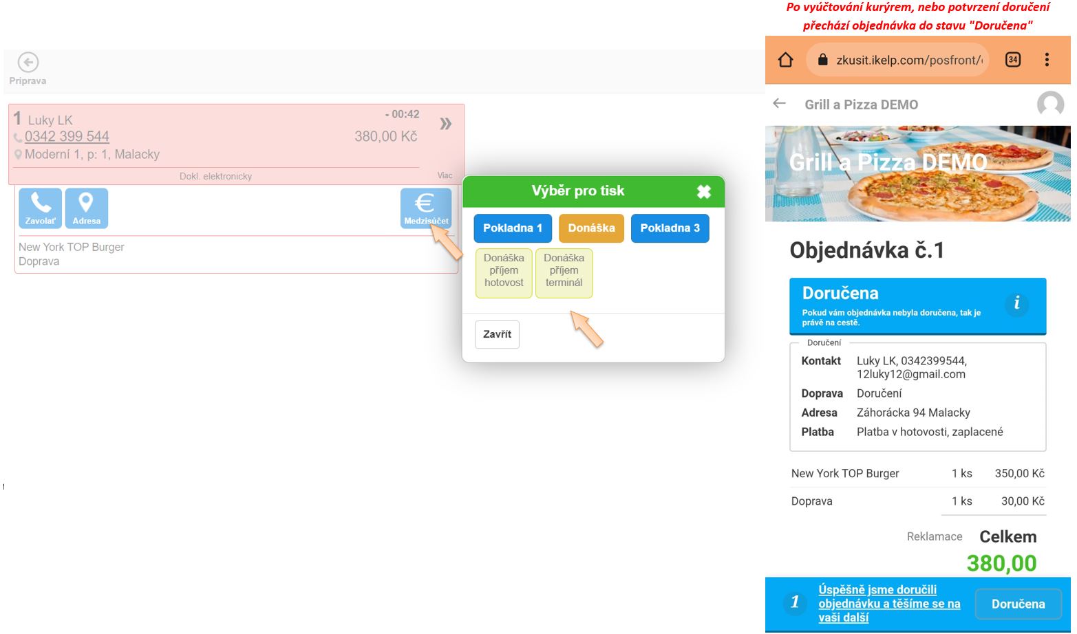 Jelikož obsluha objednávku po jejím přijetí a zpracování vyúčtuje, nelze již do procesu doručování dále zasahovat a stav této objednávky měnit, lze jen měnit předpokládaný čas doručení.