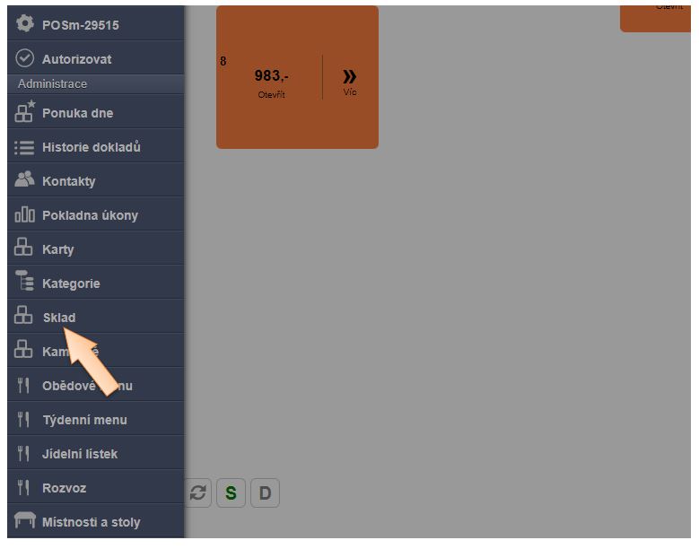 1. Klikněte na možnost Sklad v menu aplikace.