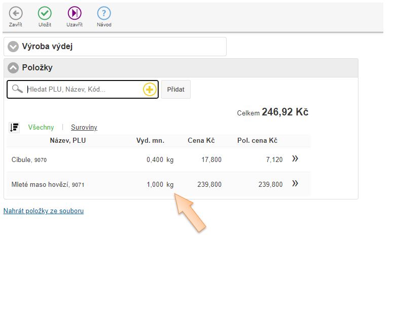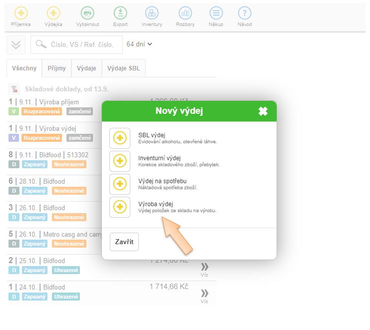 Výdej zboží / surovin na výrobu