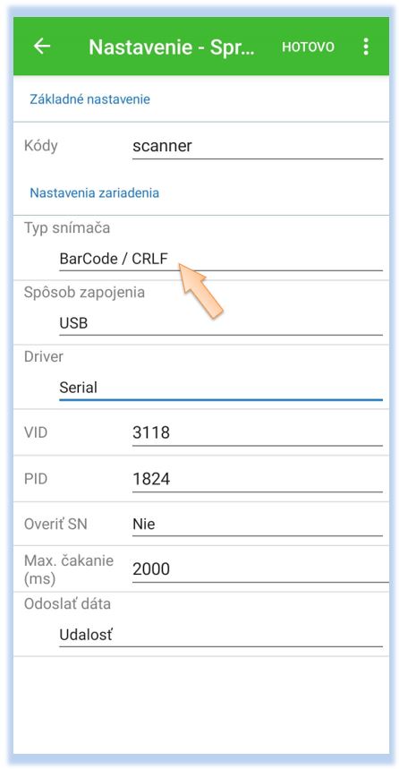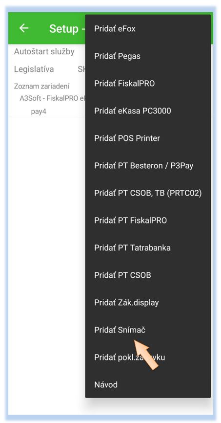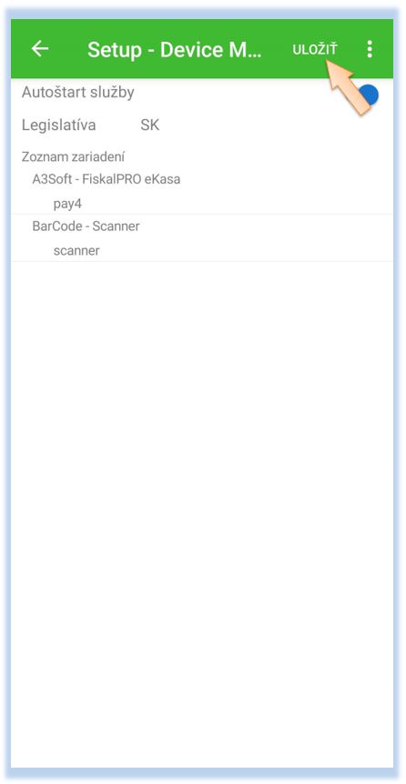 Po úspešnom nakonfigurovaní skenera je potrebné ho nadefinovať v samotnej aplikácii POS Mobile.