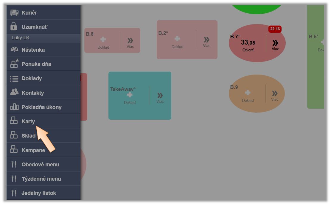 - Kliknite v menu na Karty.