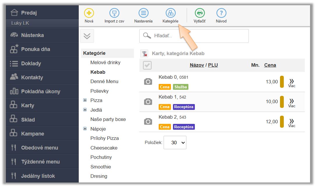 - Kliknite v menu aplikácie na Karty a Kategórie.