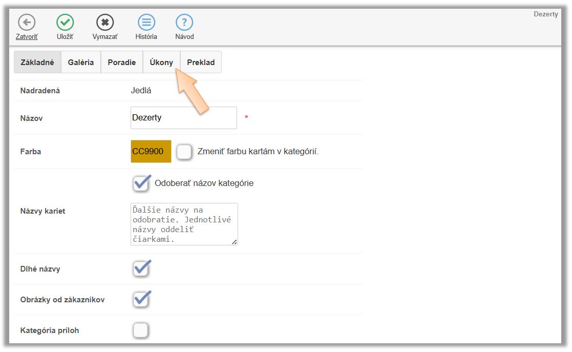 - Prejdite do záložky Úkony.