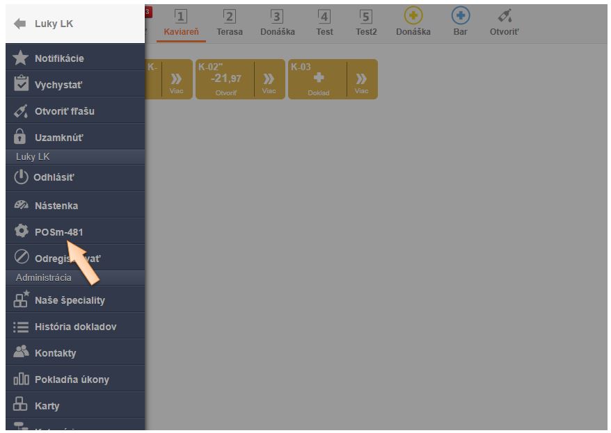 - V menu aplikácie kliknite na nastavenia zariadenia POSm - ...