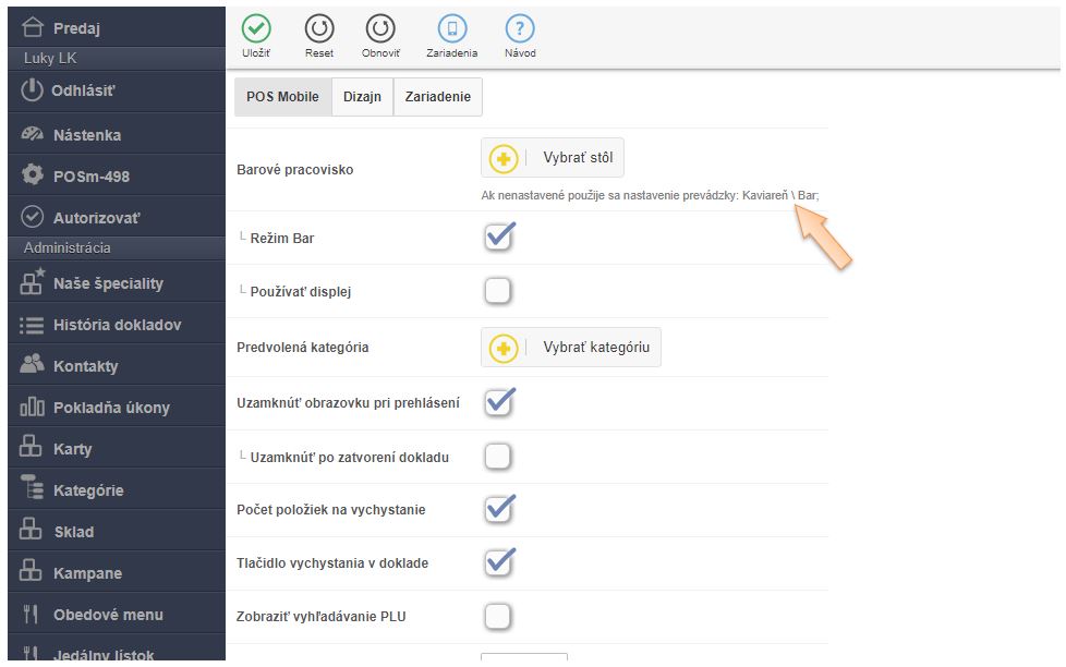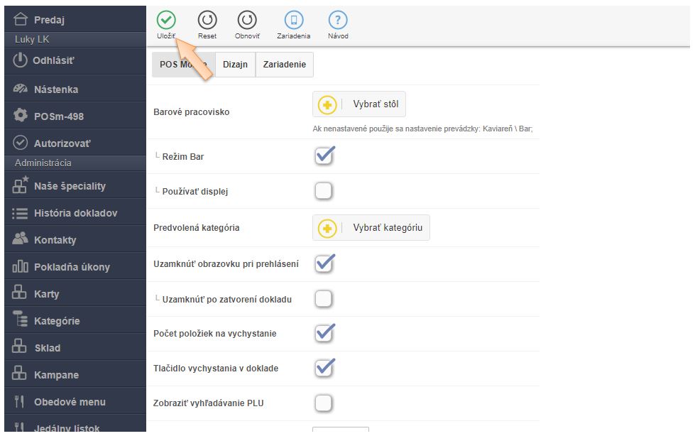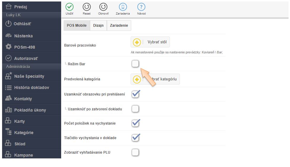 - Na barovom pracovisku je možné mať aj displej. Ak je tento v systéme pripojený a nakonfigurovaný, aktivujte aj režim Používať displej.