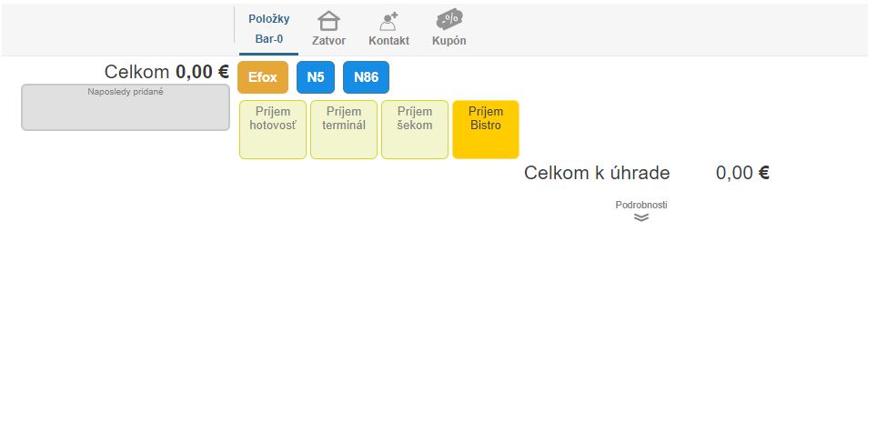 V tomto návode vám predstavíme režim rýchleho účtovania za barom. Aplikácia vám ponúka možnosť rýchleho účtovania, čo je vhodné pre účtovanie na diskotékach, pre rýchle obslúženie zákazníka na bare, v bufete a prevádzkach rýchleho občerstvenia. Ak si zákazník kupuje tovar a hneď ho platí, nie je potrebné vyberať stôl a vytvárať na ňom nový doklad. Aj po následnom vyúčtovaní je možné okamžite pridávať ďalšie položky do otvoreného dokladu. Takto je možné označiť akýkoľvek stôl a tým sa urýchli obsluha na danom stole. V prípade reštaurácie alebo diskotéky je to najčastejšie práve bar.