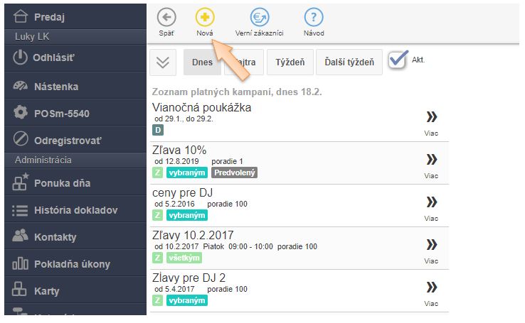 - Kliknite v menu aplikácie na možnosť Kampane.