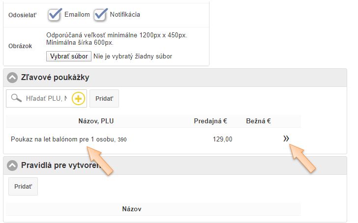 - V časti Zľavové poukážky pridajte / vytvorte kartu pre poukážku, ktorá sa bude predávať.