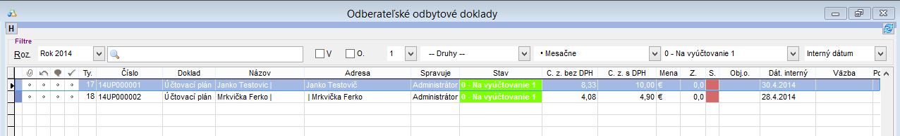 Na obrázku vidíte vyfiltrované doklady na základe príslušného druhu a zoradené podľa Interného dátumu.