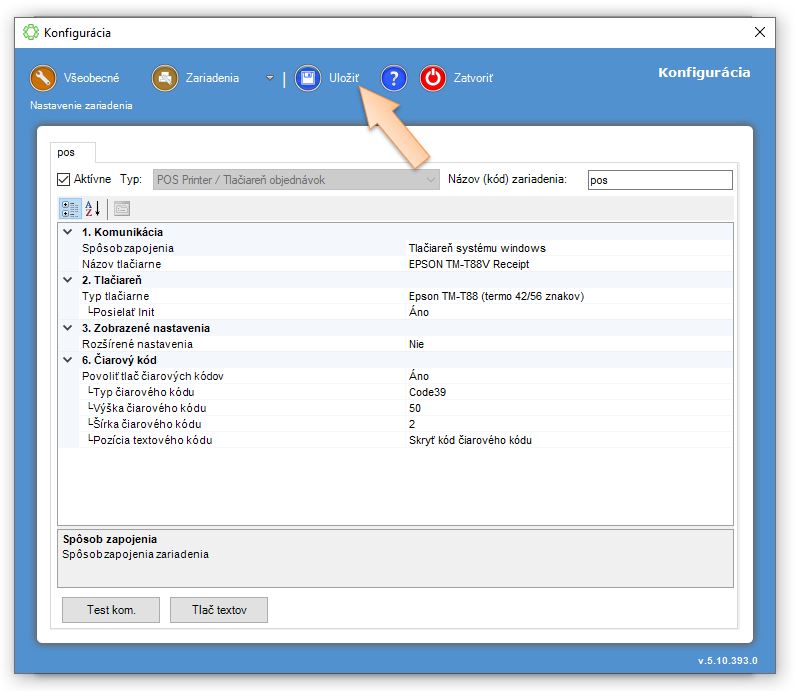 - Typ nastavte na POS Printer / Tlačiareň objednávok.