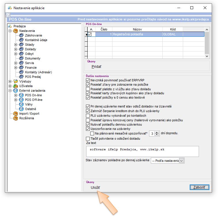 - Aktivujte možnosť Účtenka, bez ERP / VRP.