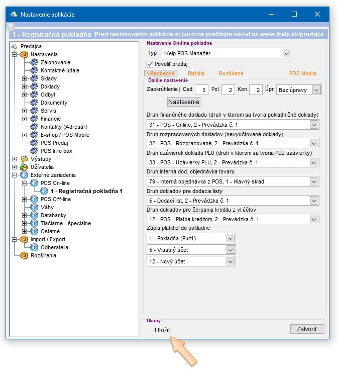 - Zariadenie sa definuje v aplikácii iKelp POS Manažér.