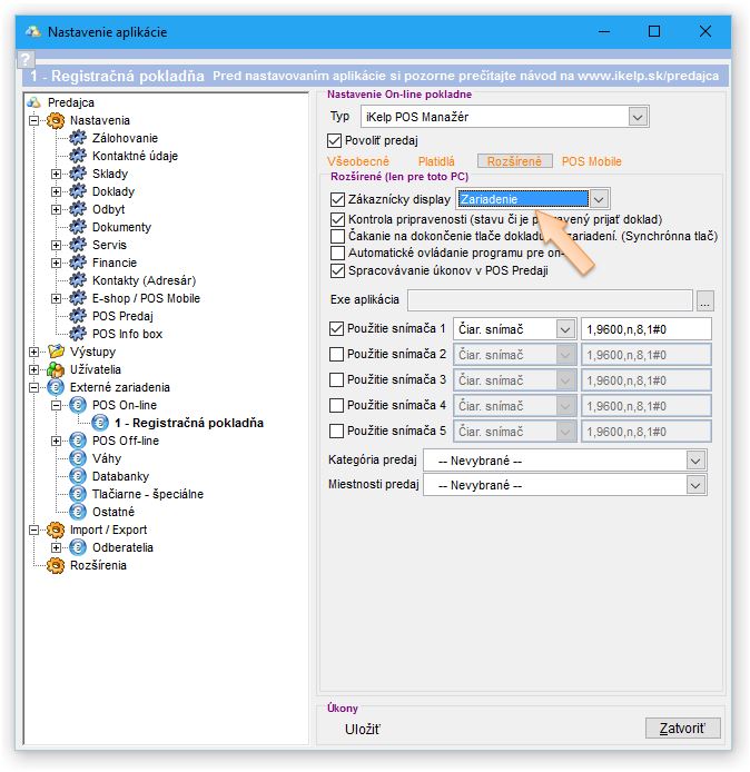 Aby bolo možné v aplikácii zariadenie používať, je potrebné v nastavení daného On-line zariadenia aktivovať nastavenie Zákaznícky displej - Zariadenie.