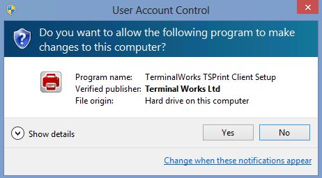 - Zobrazí sa hlásenie operačného systému Do you want to allow the following program to make changes to this computer?(prekl. Prajete si povoliť aplikácii vykonávanie zmien vo Vašom počítači?) na túto otázku odpovedajte Yes(Ano).