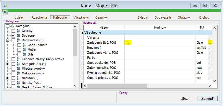 - Na skladovej karte v záložke Kategórie nadefinujte kategóriu, do ktorej bude daná skladová karta patriť.