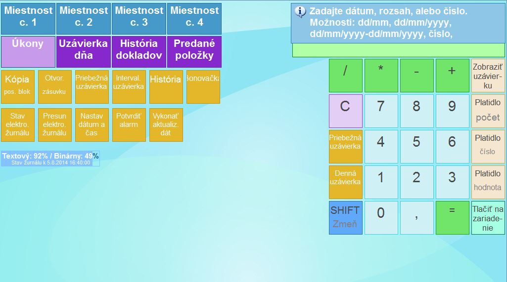 - Spustite dotykové rozhranie predaja.