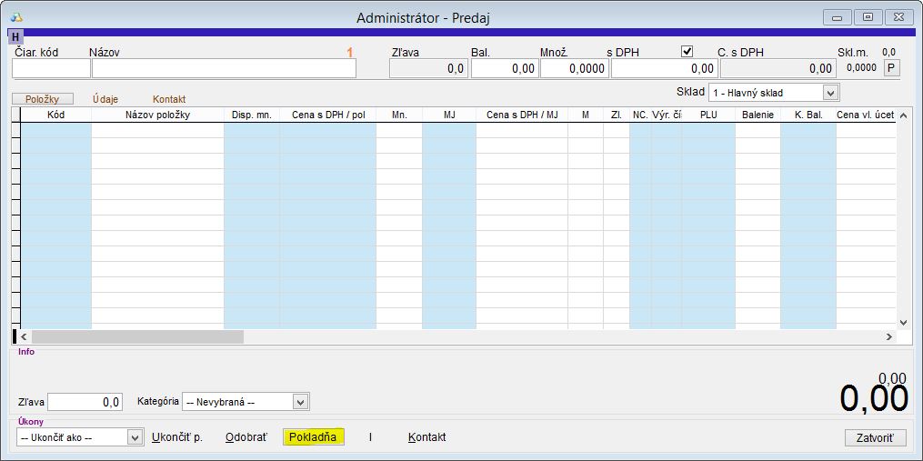 Vykonanie uzávierky v dotykovom rozhraní predaja