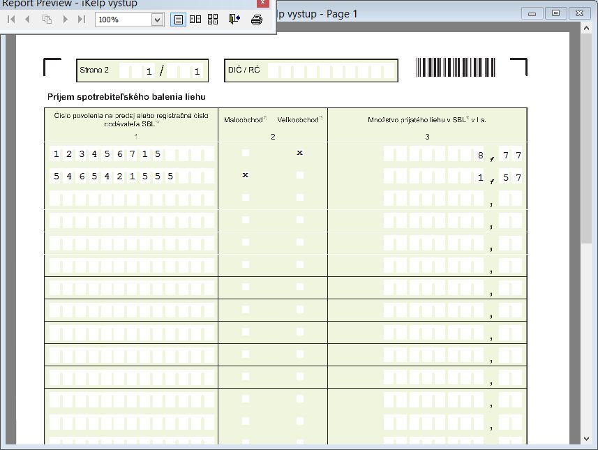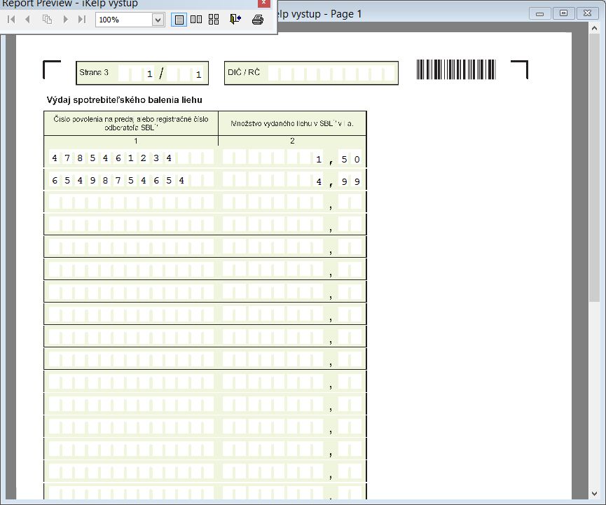 - Pre výdaj spotrebiteľského balenia liehu je vhodné skontrolovať hodnoty alkoholu či „zhruba“ zodpovedajú realite. V dolnej časti tlačiva je celkový sumár výdaja alkoholu ostatným spotrebiteľom bez evidenčného čísla.