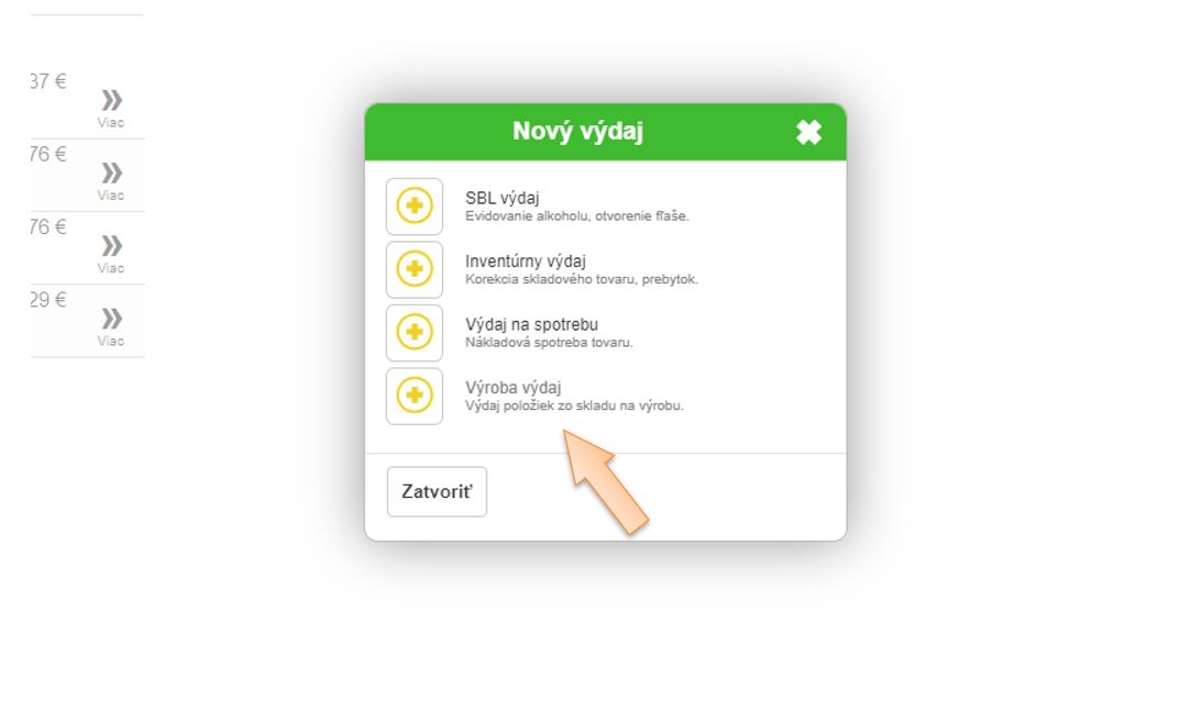 - Kliknutím na + Príjem vytvoríte skladový výdaj.