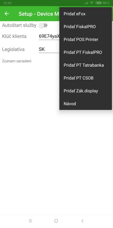 Tento článok vysvetluje konfiguráciou a nastavenia tlačiarní a ostatných periférnych zariadení v iKelp POS Mobile pre Android. Vychádza z predpokladu, že na zariadení už máte napr. zariadenie pre eKasa aktívne.  Aplikácia ponúka zoznam zariadení na základe nastavenej legislatívy pre tú danú krajinu. Okrem eKasa tlačiarní, je možné nakonfigurovať ďalšie zariadenia ako bonovacie tlačiarne, externý displej, pokladničnú zásuvku alebo váhy.