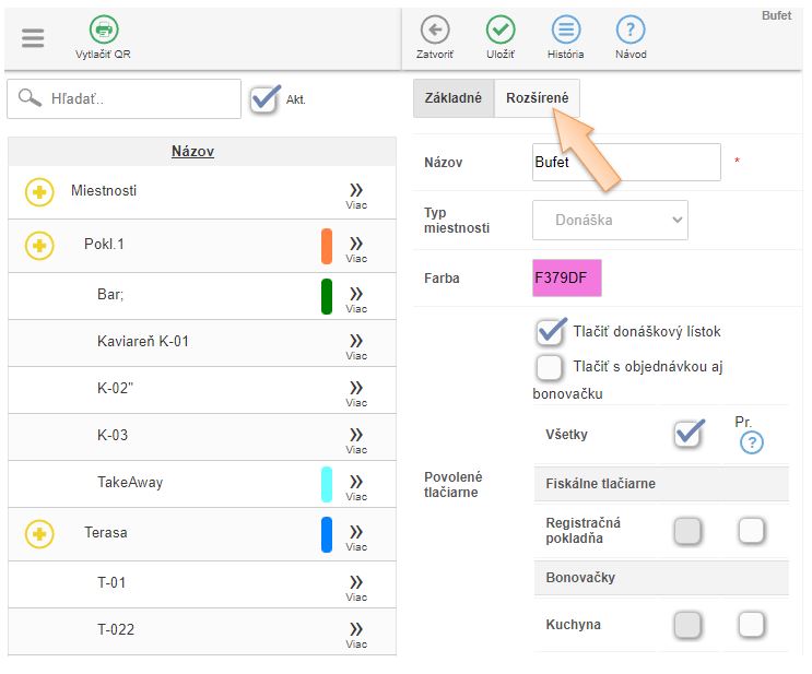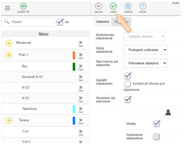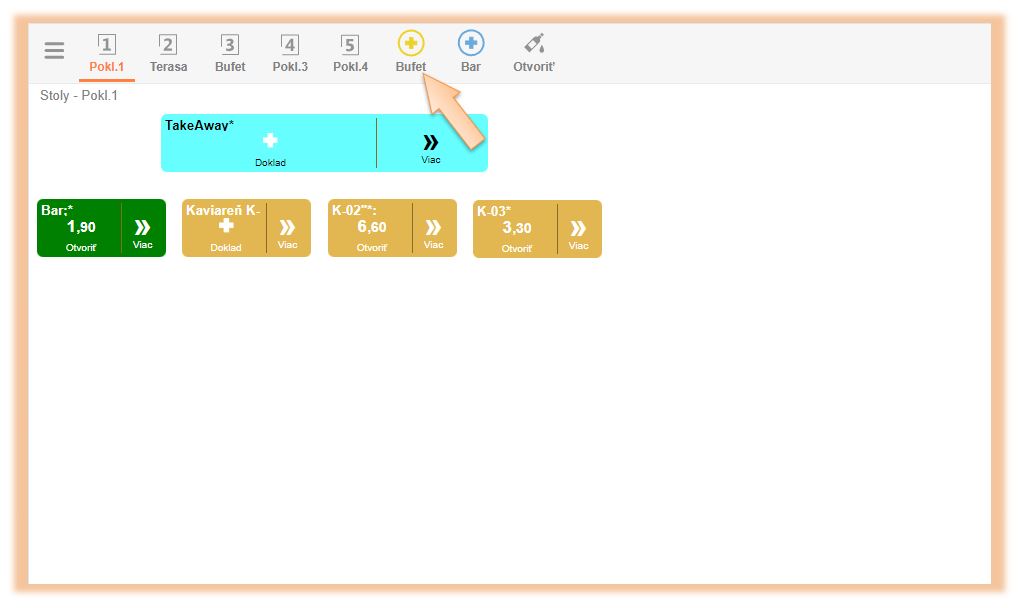 - Kliknite na miestnosť Donáška. (Miestnosť je možné si premenovať podľa potreby, napr. na Bufet.)