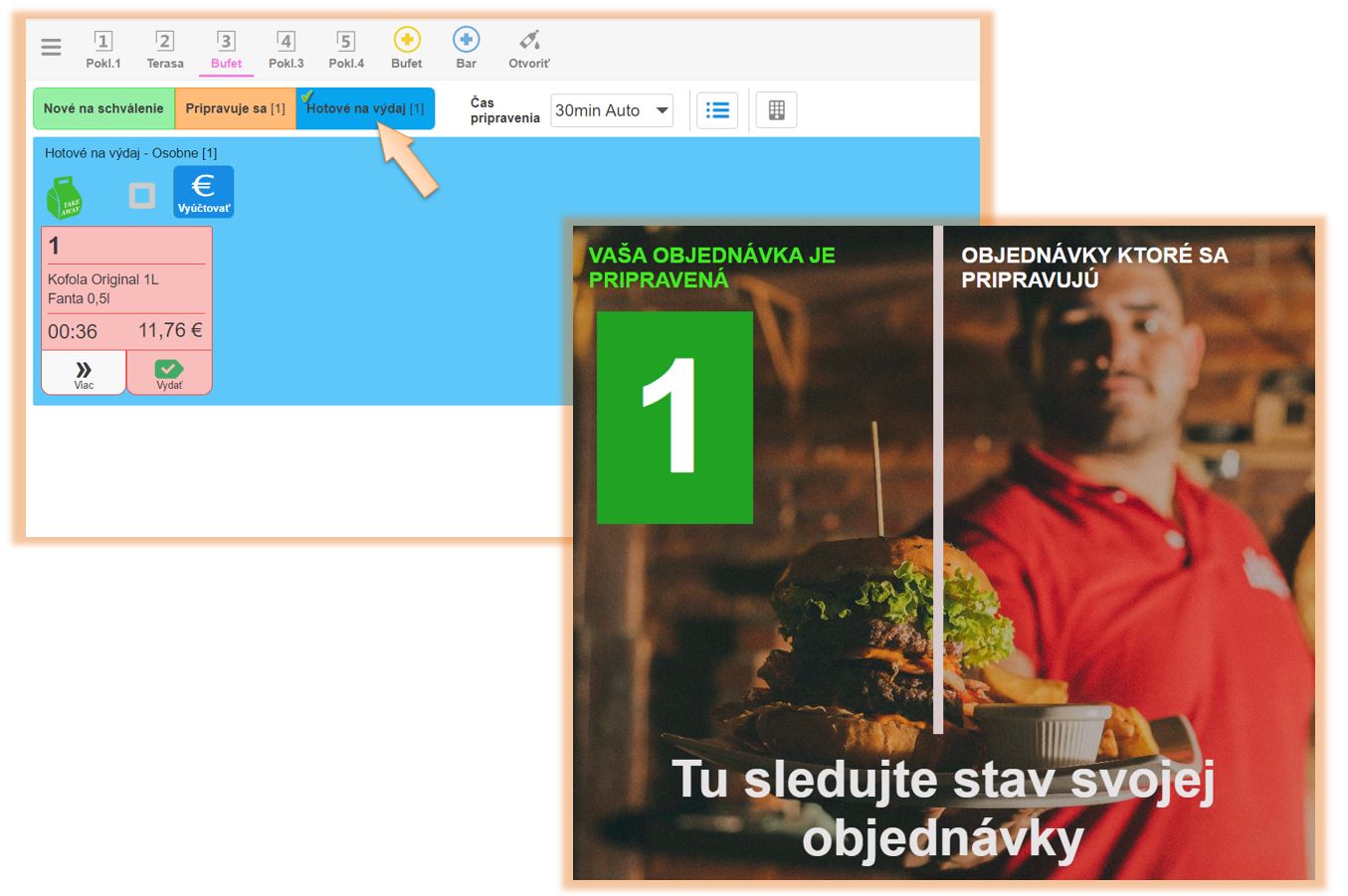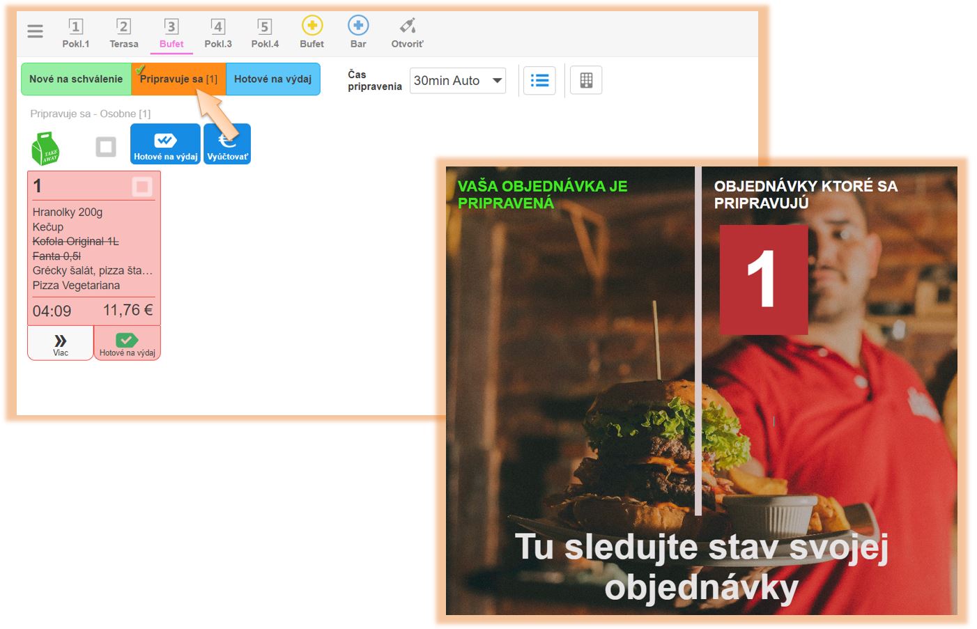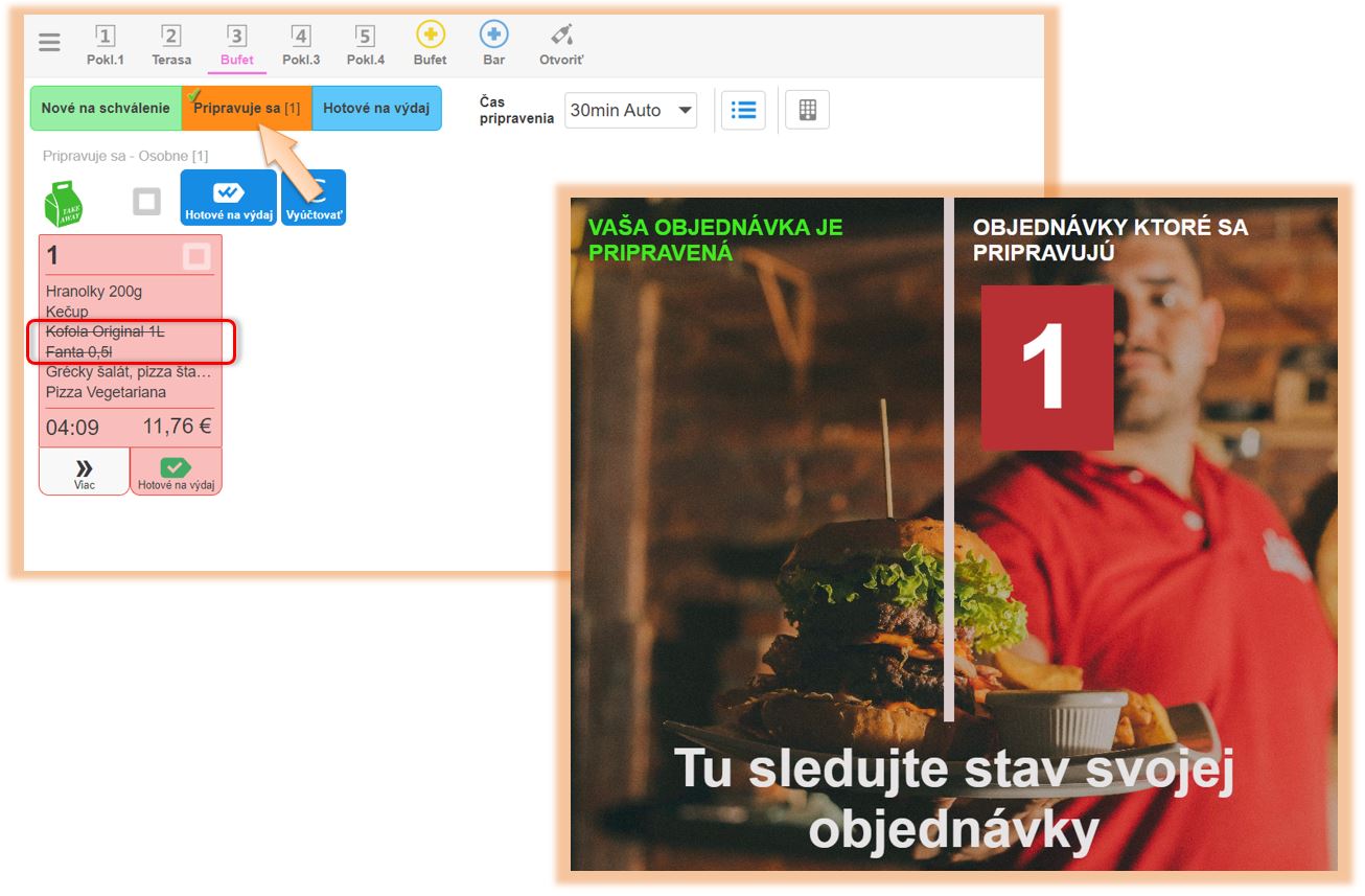 - Objednávka na displeji prechádza do časti Pripravuje sa.