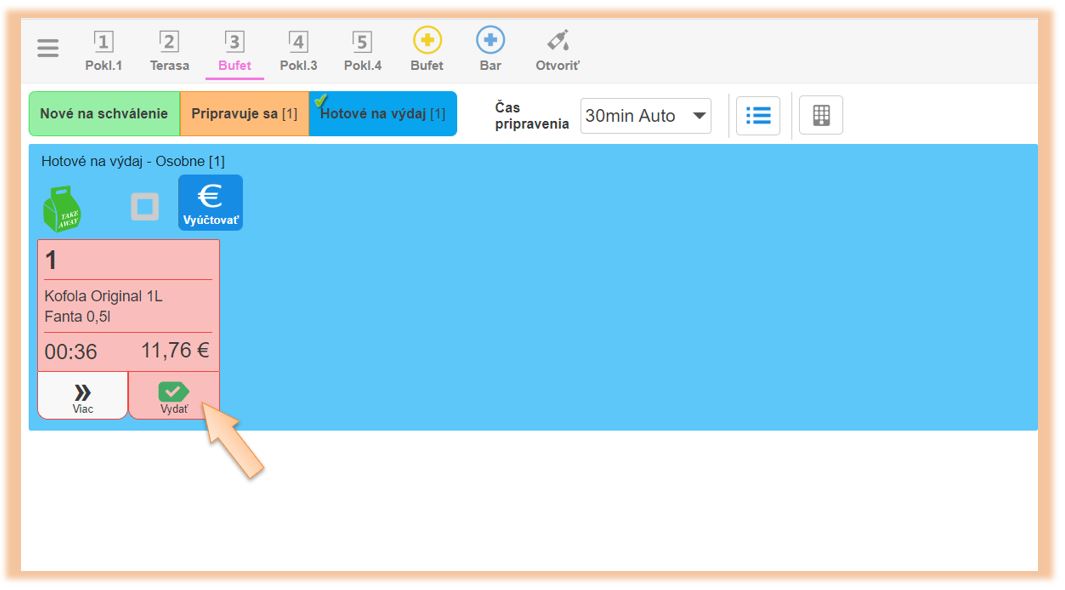 - Kliknite v správe objednávok v sekcii Hotové na výdaj a Vydať.