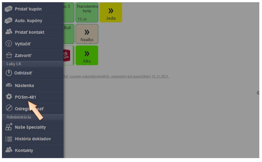 - V menu aplikácie kliknite na nastavenia zariadenia POSm - ...